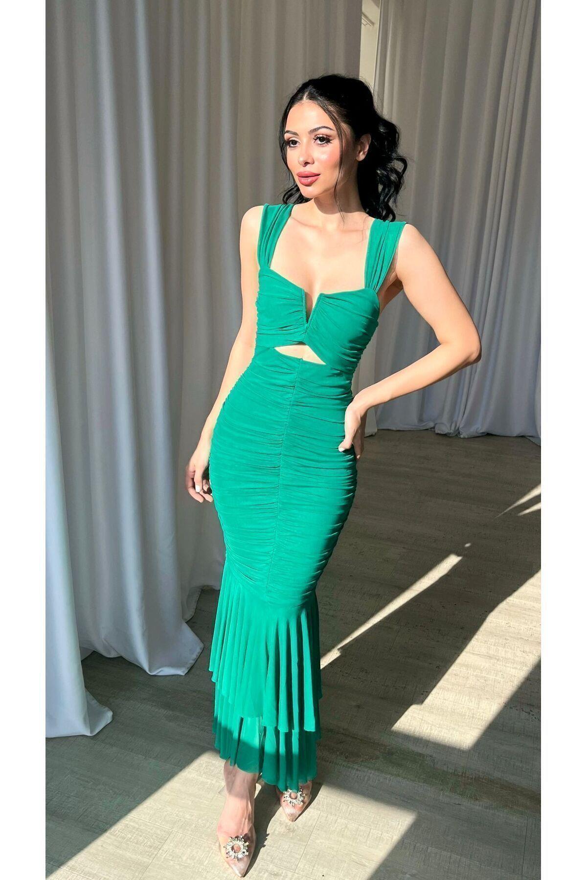 Kalın Askılı Boydan Sık Drapeli Göbek Pencere Detay Midi Bodycon Elbise - Abiye & Mezuniyet Elbisesi Kalın Askılı Boydan Sık Drapeli Göbek Pencere Detay Midi Bodycon Elbise - Abiye & Mezuniyet Elbisesi MSCX093 L