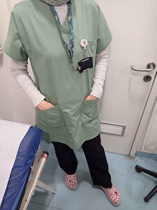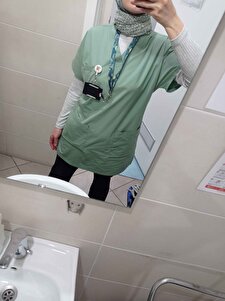 Tunik boy tesettür hemşire üniforması tek üst küf yeşili terikoton kumaş Tunik boy tesettür hemşire üniforması tek üst küf yeşili terikoton kumaş küf yeşili tunik boy tek üst L