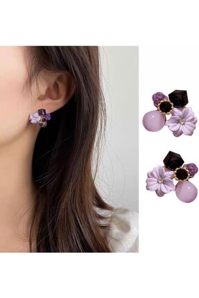 Fransız Tasarım Asil Mor Çiçek Küpe Fransız Tasarım Asil Mor Çiçek Küpe çiçek10262 S