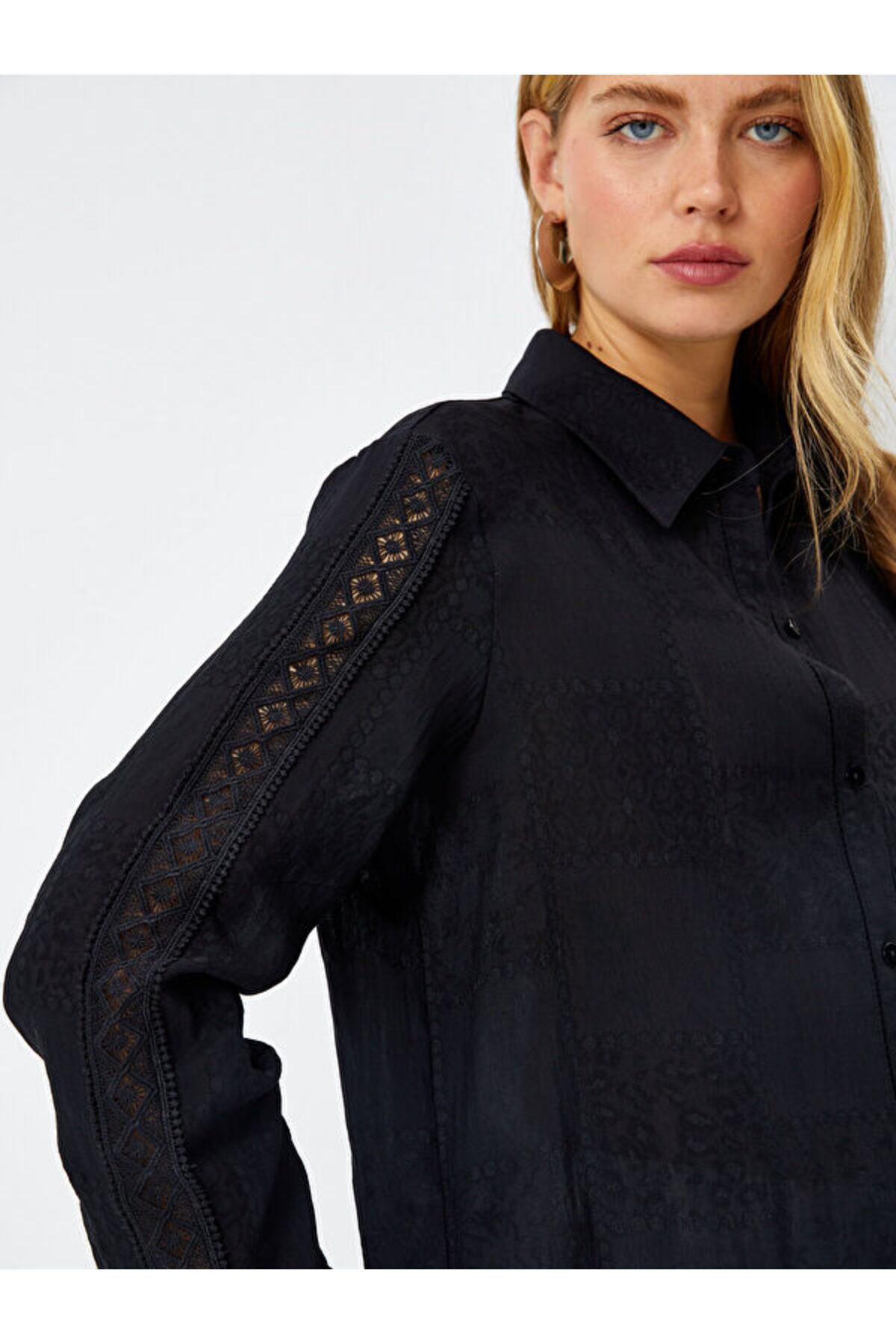 Dantel Garnili Kendinden Jakarlı Şık Gömlek 68190 Dantel Garnili Kendinden Jakarlı Şık Gömlek 68190 U68190 2XL