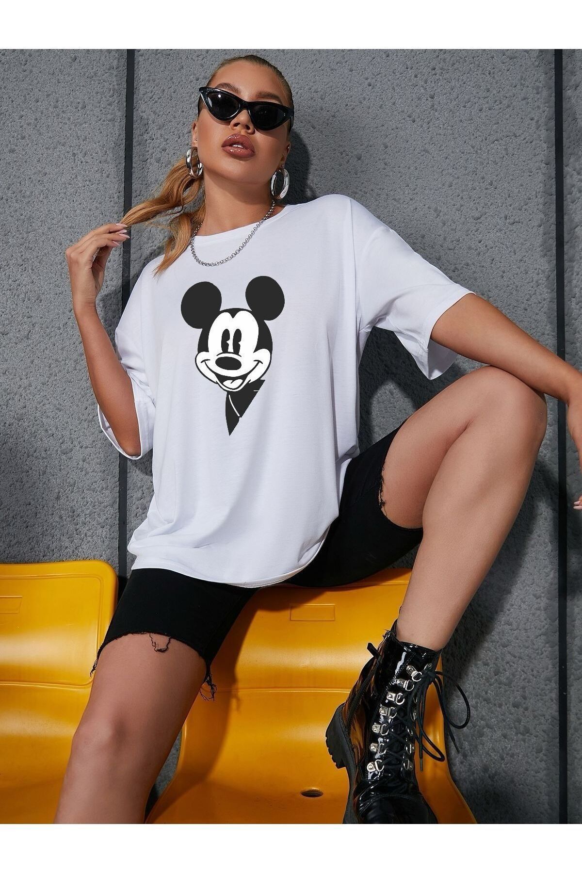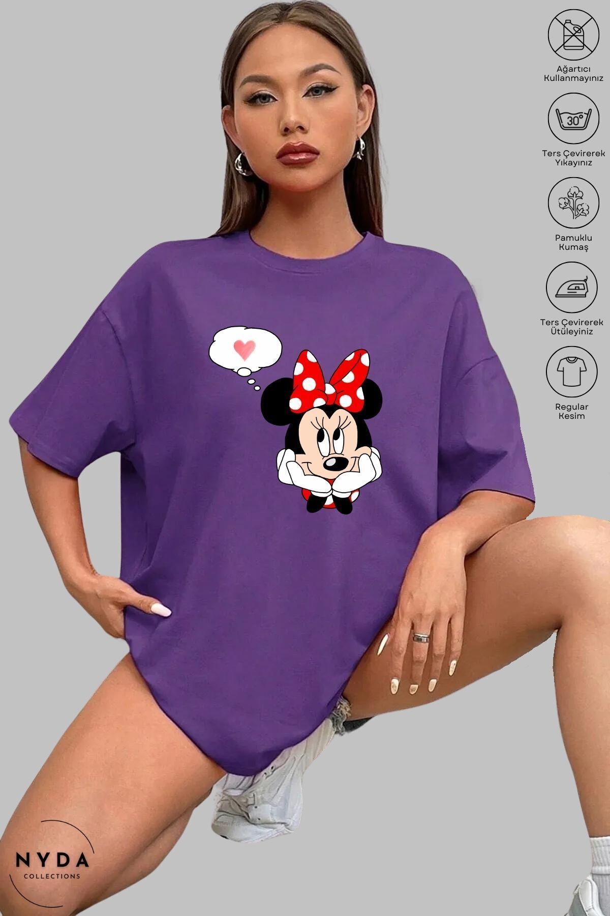 Kadın Oversize Bisiklet Yaka Pamuk Mickey Mouse Baskılı Kısa Kollu Tişört Kadın Oversize Bisiklet Yaka Pamuk Mickey Mouse Baskılı Kısa Kollu Tişört NYDA-T-MICKEY-MOUSE XL