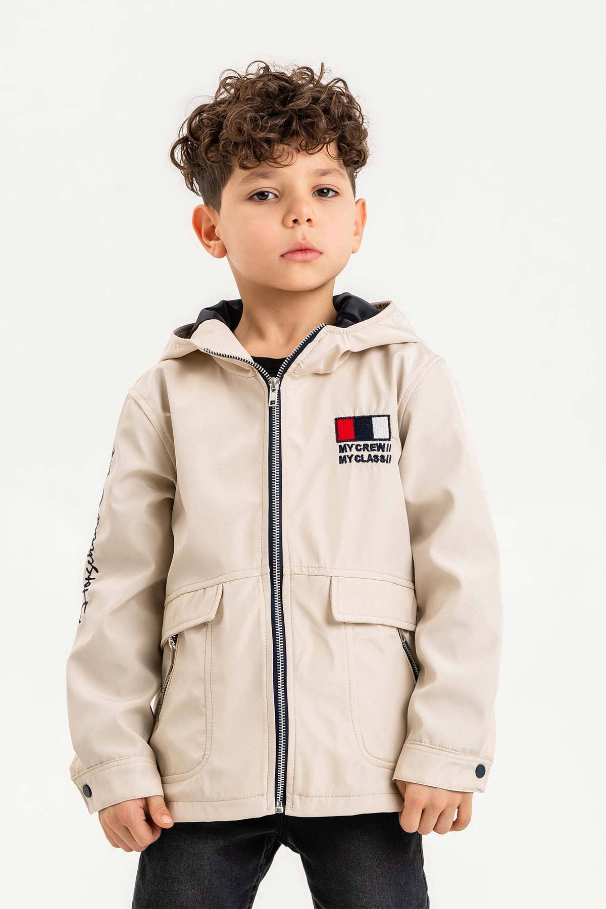 Kapüşonlu Fermuarlı Nakış Süslemeli Su Geçirmez Erkek Çocuk Ceket Kapüşonlu Fermuarlı Nakış Süslemeli Su Geçirmez Erkek Çocuk Ceket 23093 13-14 Yaş