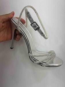Kadın Gümüş Ayna 3 Bant Taşlı Bilekten Abiye Ayakkabı Kadın Gümüş Ayna 3 Bant Taşlı Bilekten Abiye Ayakkabı KPR04151954 40