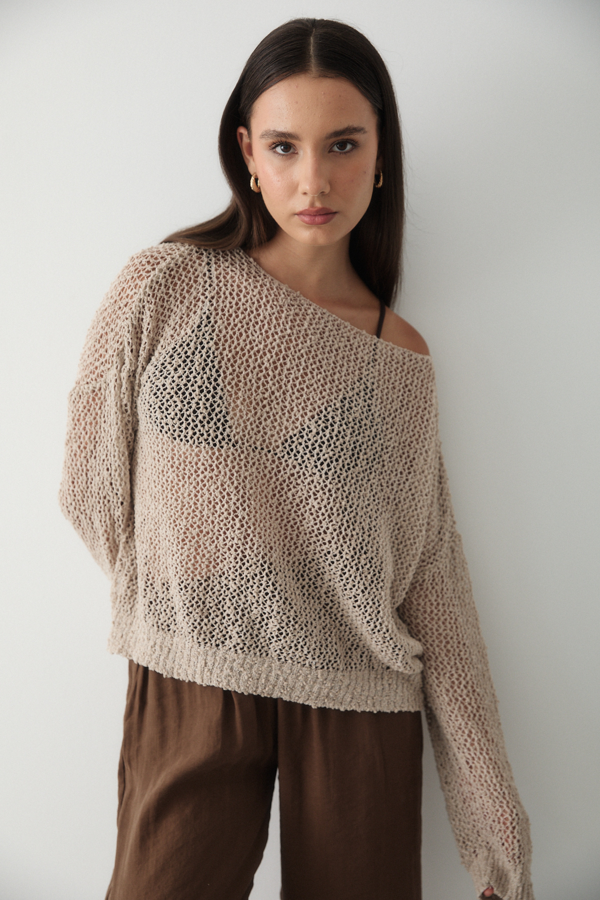 Kadın Bej Asimetrik File Detaylı Keten Bluz Kadın Bej Asimetrik File Detaylı Keten Bluz 231011-ROSIDAM Standart