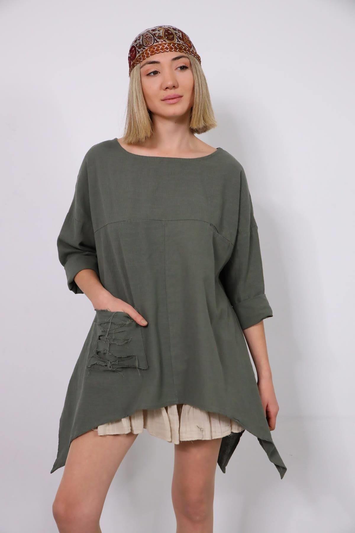 Kadın Gri Asimetrik File Detaylı Keten Bluz Kadın Gri Asimetrik File Detaylı Keten Bluz 231011-ROSIDAM Standart
