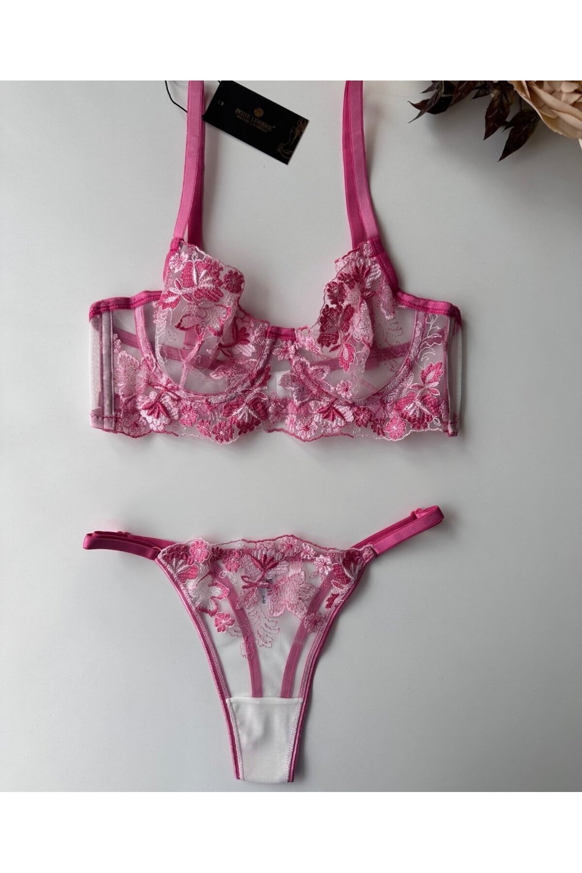 Flower Inside Pembe Transparan Çiçek Desenli Seksi Sütyen Takım Flower Inside Pembe Transparan Çiçek Desenli Seksi Sütyen Takım INTVFLOINP 90