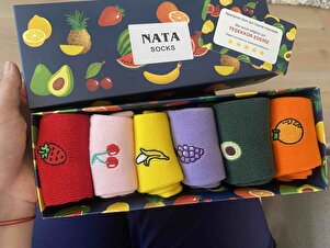 6'lı Renkli Unisex ,Üzüm,Kiraz,Muz,Portakal,Avakado,Çilek Nakışlı Meyveli Çorap Kutusu 6'lı Renkli Unisex ,Üzüm,Kiraz,Muz,Portakal,Avakado,Çilek Nakışlı Meyveli Çorap Kutusu A113 36-42