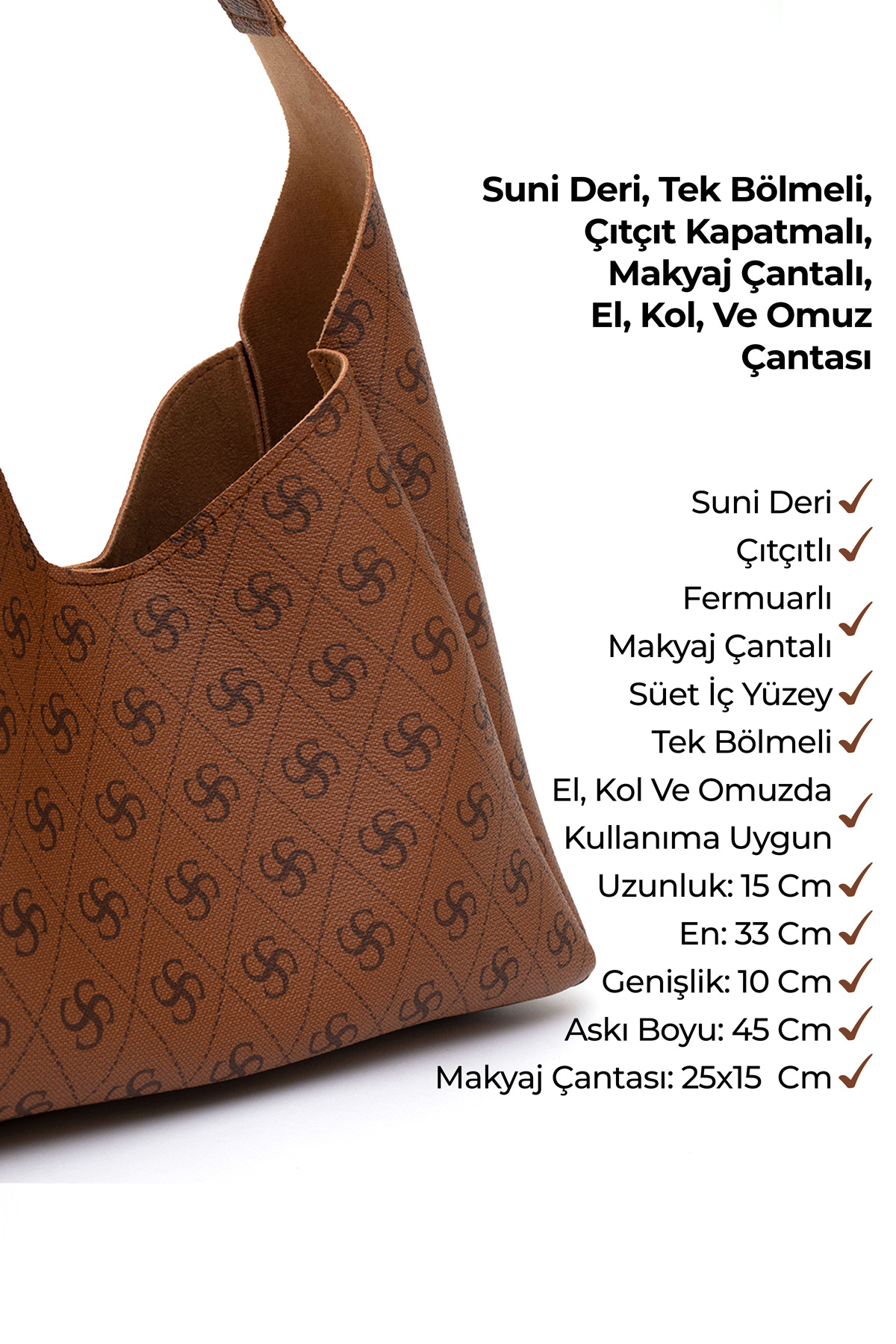 Monogram Baskılı Taba SHK19 Suni Deri, Çıtçıtlı, Tek Bölmeli, Fermuarlı Makyaj Çantalı, El, Kol ve O Monogram Baskılı Taba SHK19 Suni Deri, Çıtçıtlı, Tek Bölmeli, Fermuarlı Makyaj Çantalı, El, Kol ve O S225-00122 تک سایز