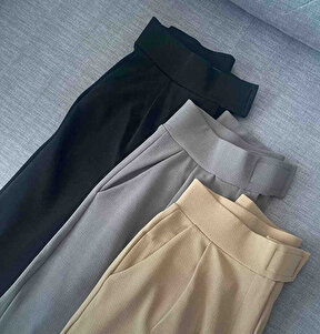 Kadın Siyah Ön Çımalı Beli Lastikli Yüksek Bel Boru Paça Palazzo Krep Pantolon Kadın Siyah Ön Çımalı Beli Lastikli Yüksek Bel Boru Paça Palazzo Krep Pantolon nf-0082 L/40