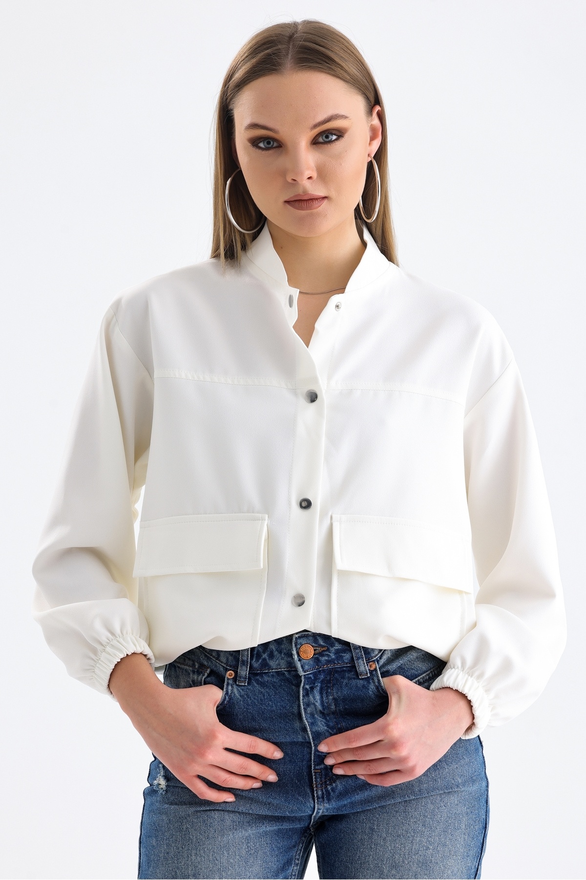 Kadın Bel Lastikli Çift Cepli Yumuşak Dokulu Bomber Ceket Kadın Bel Lastikli Çift Cepli Yumuşak Dokulu Bomber Ceket MDTRN28978 XL