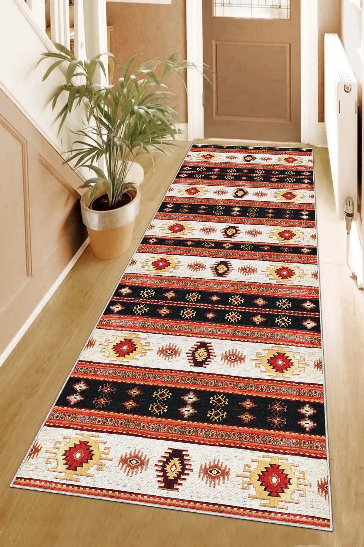 Kilim Desenli Etnik Dijital Baskı Yıkanabilir Kaymaz Taban Modern Salon Halı ve Yolluk Kilim Desenli Etnik Dijital Baskı Yıkanabilir Kaymaz Taban Modern Salon Halı ve Yolluk YLLK34 100 x 300