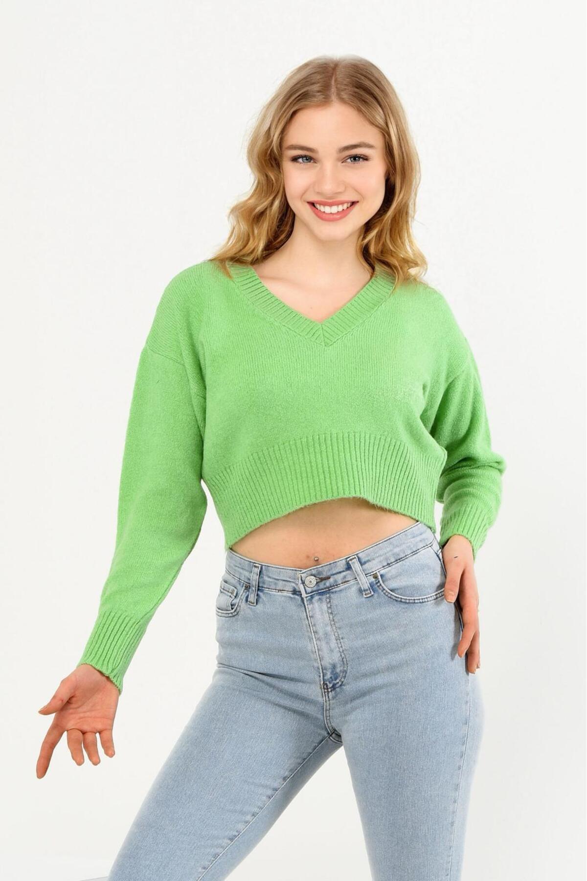 Kadın Saç Örgü Triko Crop Kazak Kadın Saç Örgü Triko Crop Kazak 1016 Standart