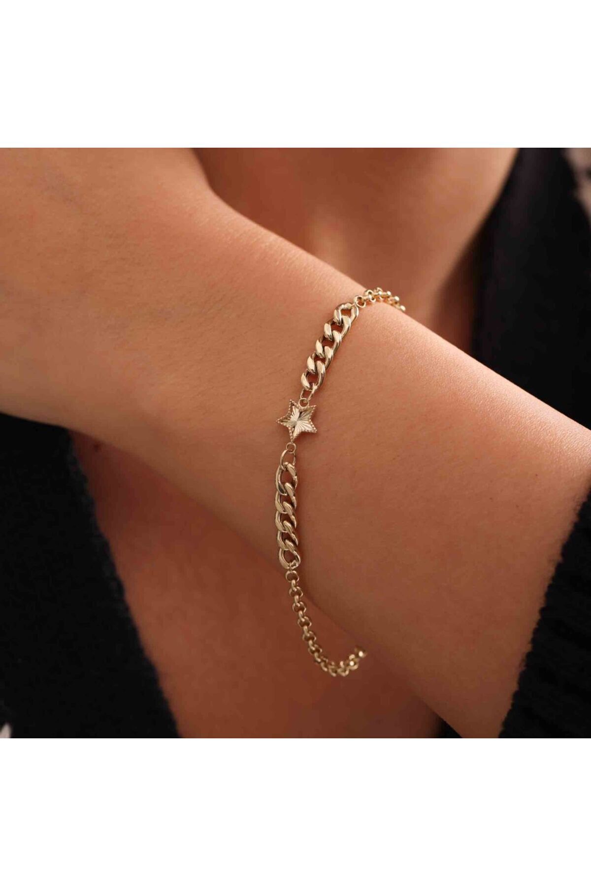 Altın Gurmet Bileklik Yıldız Form 14K Altın Gurmet Bileklik Yıldız Form 14K T12849 تک سایز