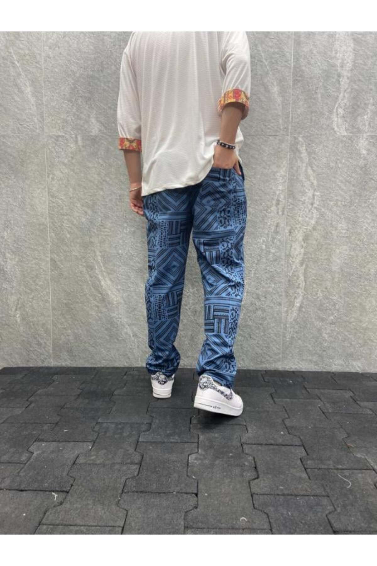 Beli Lastikli Aztek Desenli Bohem Pamuk Dokuma Mavi Pantolon Beli Lastikli Aztek Desenli Bohem Pamuk Dokuma Mavi Pantolon FİLO20250065 XL