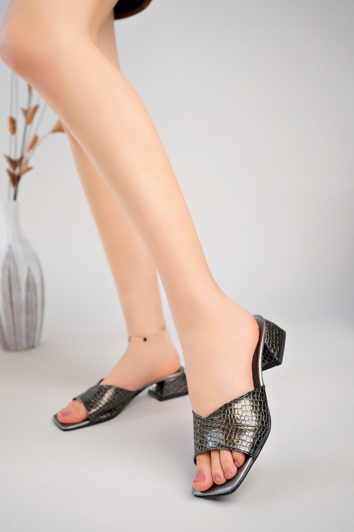 Kadın Platin Tül Detay Şık Topuklu Terlik Kadın Platin Tül Detay Şık Topuklu Terlik 811-MKY 41