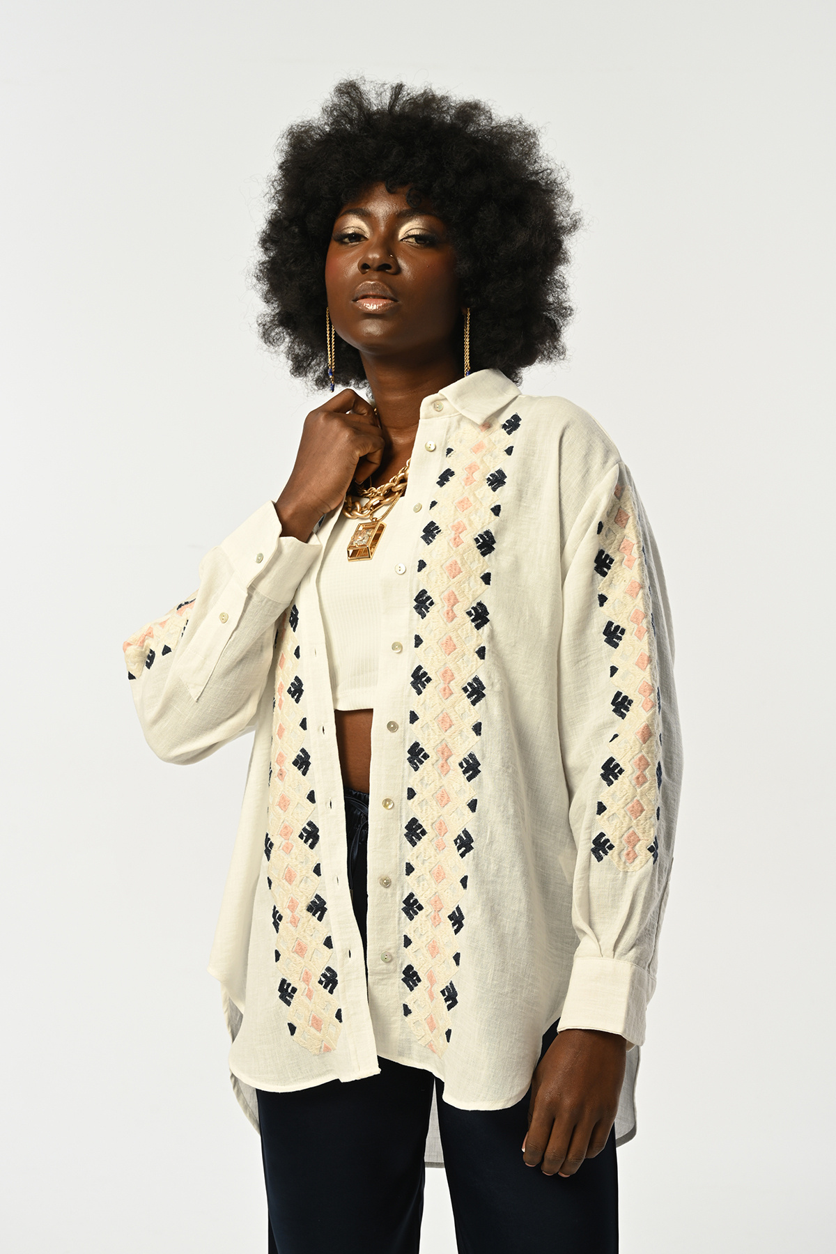 KADIN GEOMETRİK DESENLİ GÖMLEK KADIN GEOMETRİK DESENLİ GÖMLEK 33756 L