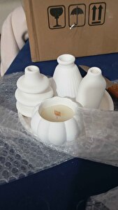 Beyaz Renk Özel Tasarım Mum Ve Vazo Seti Beyaz Renk Özel Tasarım Mum Ve Vazo Seti ÖZELTASARIMKABAK تک سایز