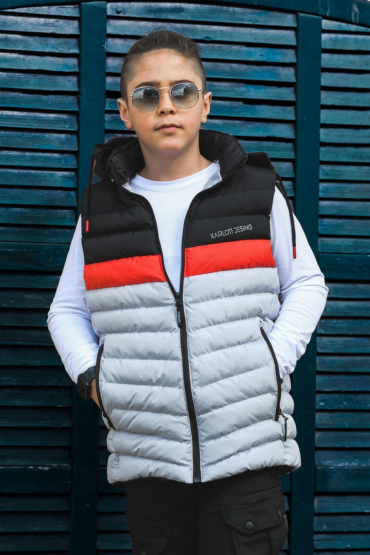 Erkek Çocuk Kapüşpnlu Üç Renk Şişme Yelek YLK.2001 Erkek Çocuk Kapüşpnlu Üç Renk Şişme Yelek YLK.2001 15-16 Yaş