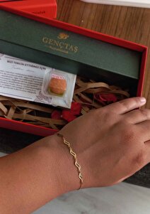 Beşli Modern Ve Şık Dalga 14 Ayar Altın Kadın Bileklik Beşli Modern Ve Şık Dalga 14 Ayar Altın Kadın Bileklik 5180-GT 21 cm