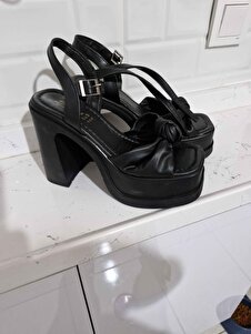 Kadın Fiyonk Bantlı (12cm) Platformlu Topuklu Ayakkabı siyah Kadın Fiyonk Bantlı (12cm) Platformlu Topuklu Ayakkabı siyah AMİ2253-AOS 40
