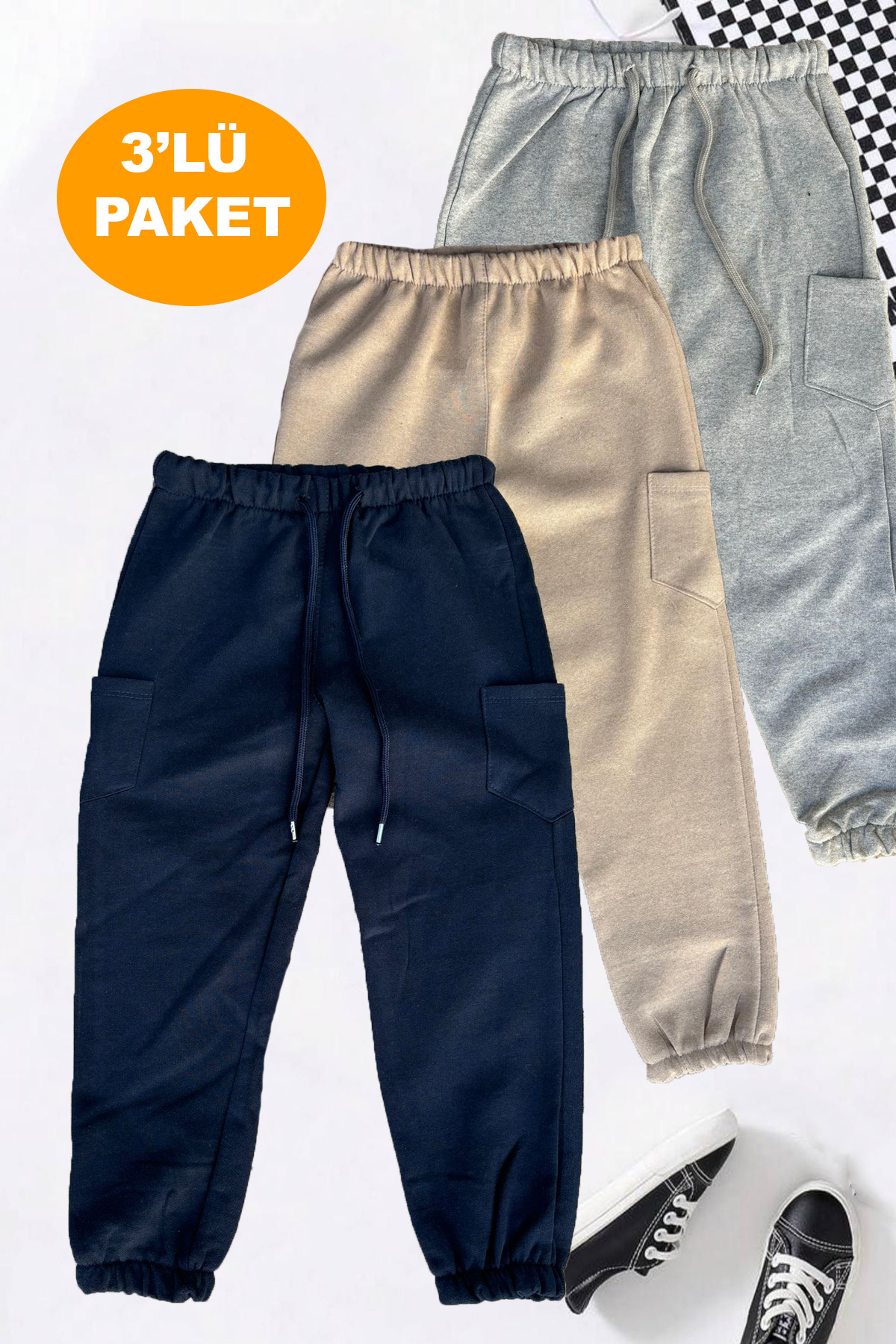 3'lü Mavi Kahve Yeşil Cepli Jogger Set 3'lü Mavi Kahve Yeşil Cepli Jogger Set S27980 13-14 Yaş