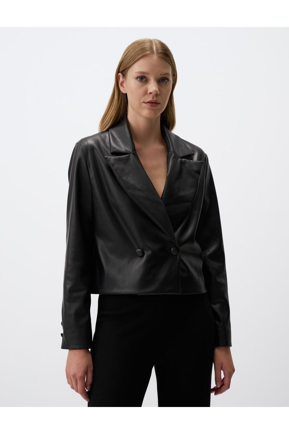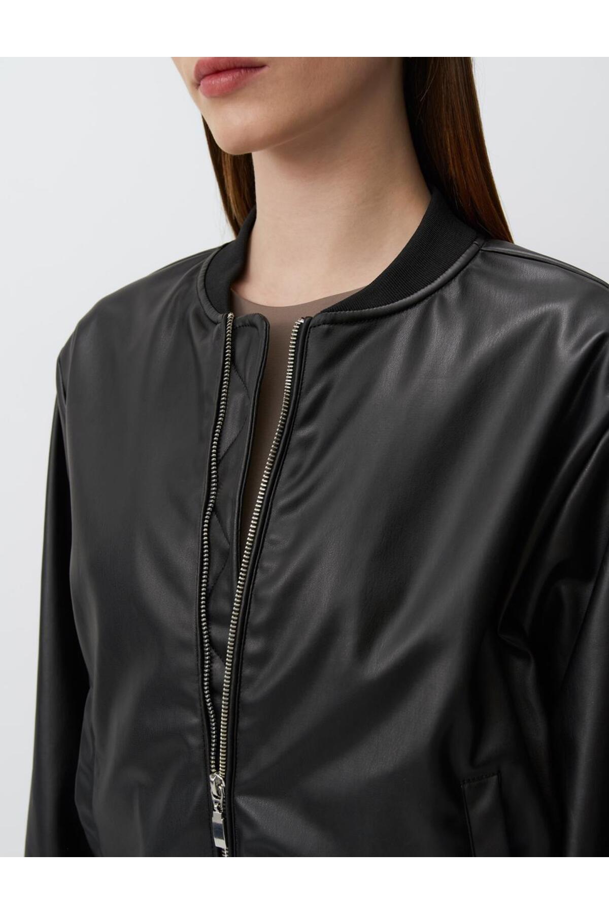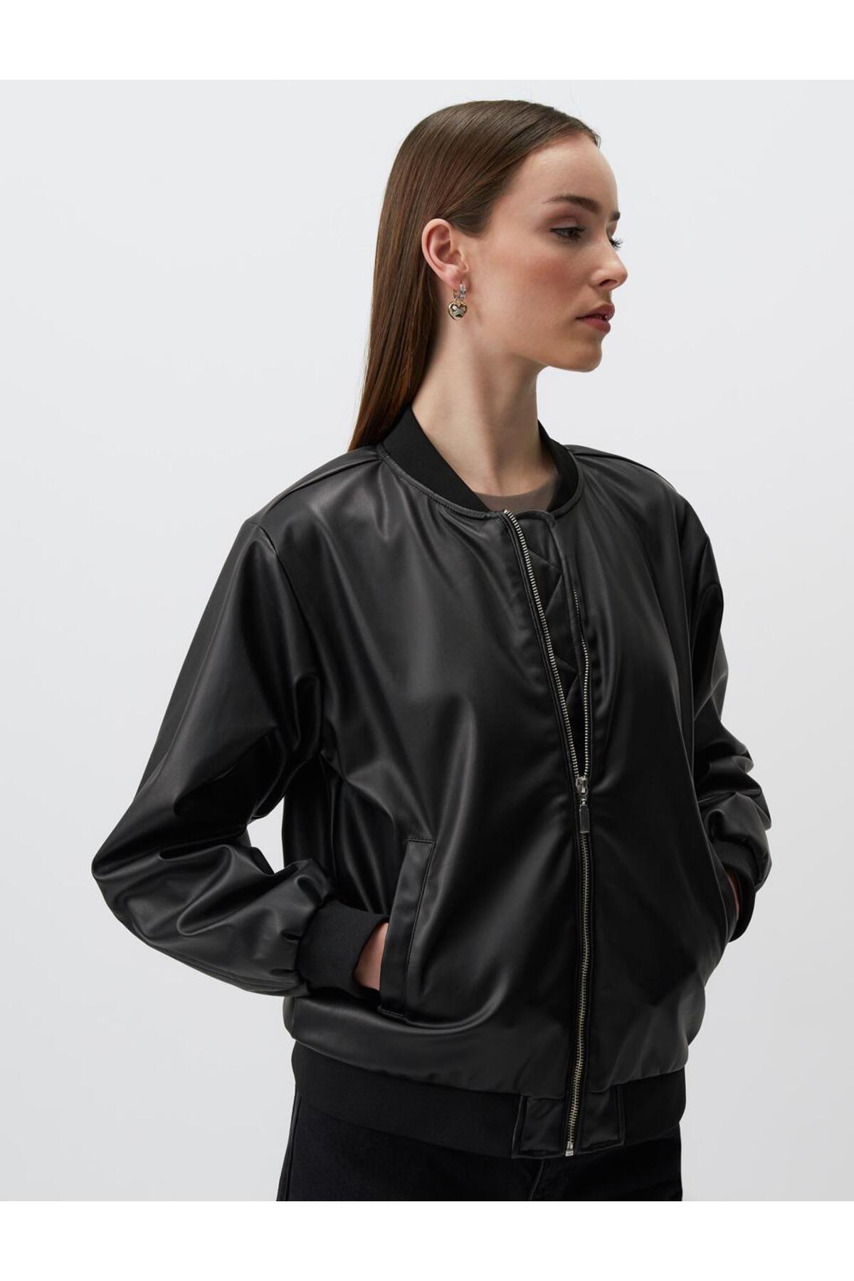Siyah Uzun Kollu Deri Bomber Ceket Siyah Uzun Kollu Deri Bomber Ceket 24SC150011 XL