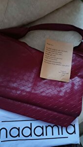Bordo Kadın Örgü Desenli Bottega Deri Omuz Çantası Bordo Kadın Örgü Desenli Bottega Deri Omuz Çantası MK1020024SM25-003 تک سایز
