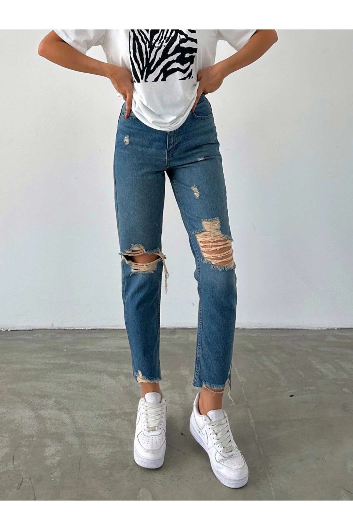 11123 Yırtık Detaylı Mom Jean Buz 11123 Yırtık Detaylı Mom Jean Buz 24Y1123133010 44