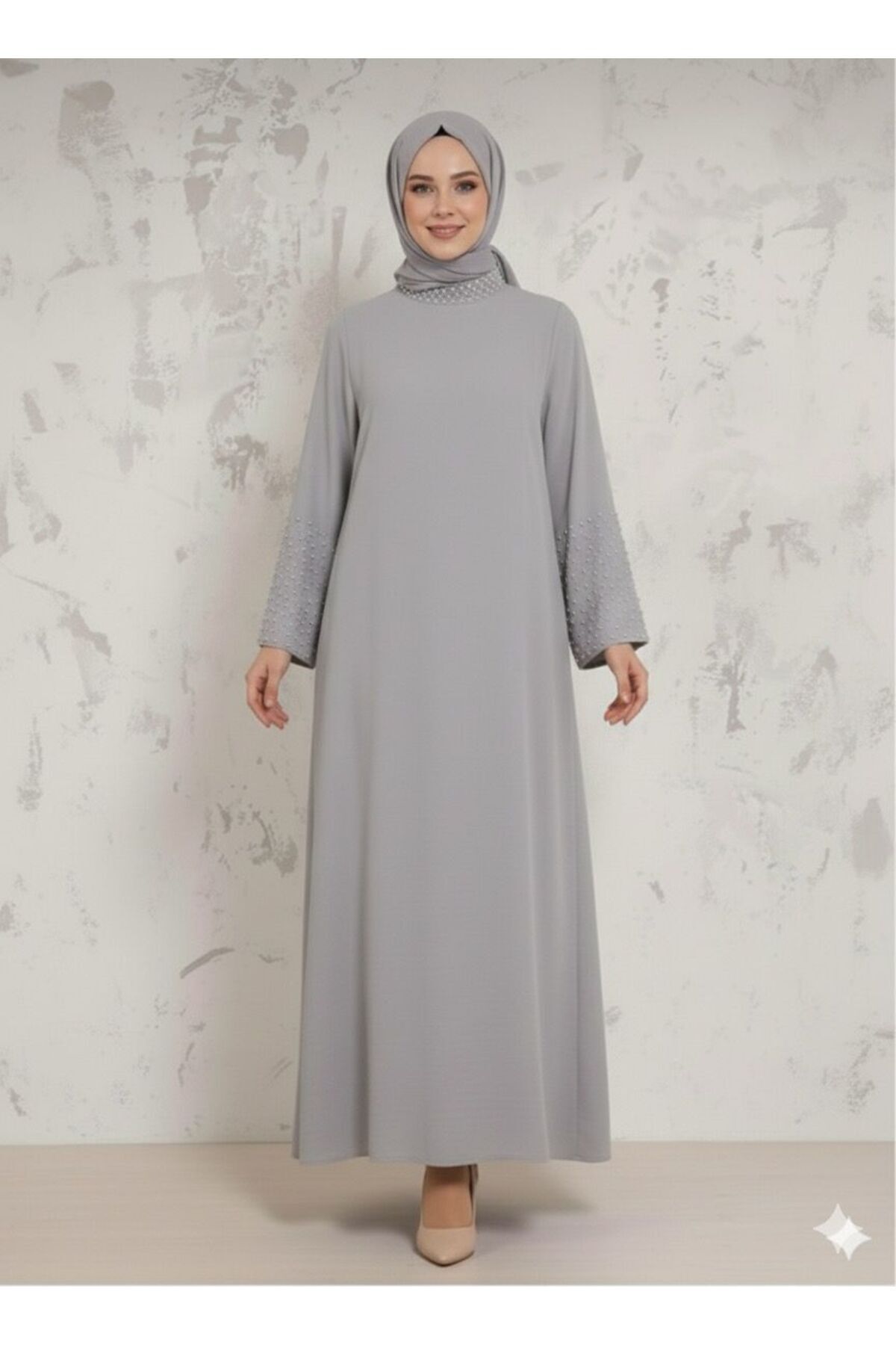 KADIN YAKA VE KOLLARI TAŞ İŞLEMELİ KEMER DETAYLI ELBİSE KADIN YAKA VE KOLLARI TAŞ İŞLEMELİ KEMER DETAYLI ELBİSE BK460180 46