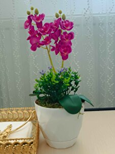 Mini ikili orkide canlı renkli yapay çiçek beyaz saksıda dekoratif masaüstü hediyelik çiçek Mini ikili orkide canlı renkli yapay çiçek beyaz saksıda dekoratif masaüstü hediyelik çiçek CNH3700 تک سایز