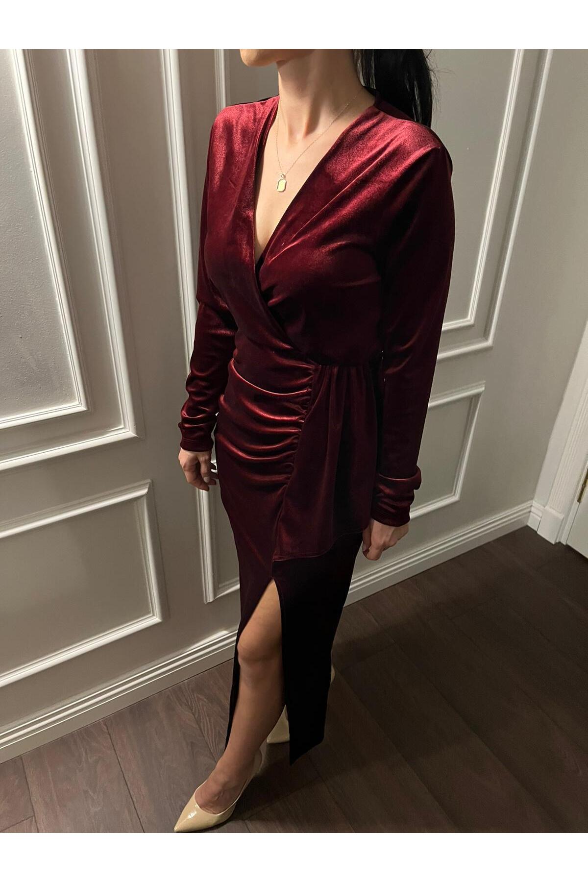 kalp yaka, Drapeli kadife elbise kalp yaka, Drapeli kadife elbise şn7772 3XL