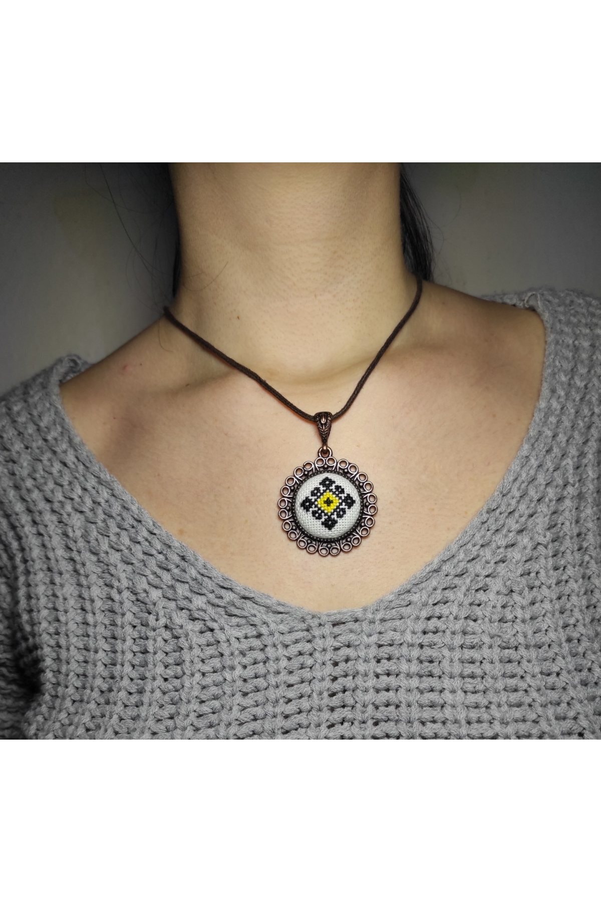 Yöresel Motif Işlemeli Kanaviçe Kolye Yöresel Motif Işlemeli Kanaviçe Kolye AKO5 تک سایز
