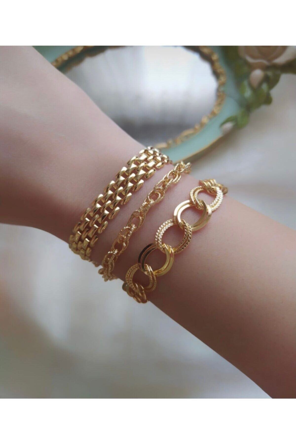 Altın kaplama zirkon taşlı kombin bileklik Altın kaplama zirkon taşlı kombin bileklik LOWENCHARM00020 M/S