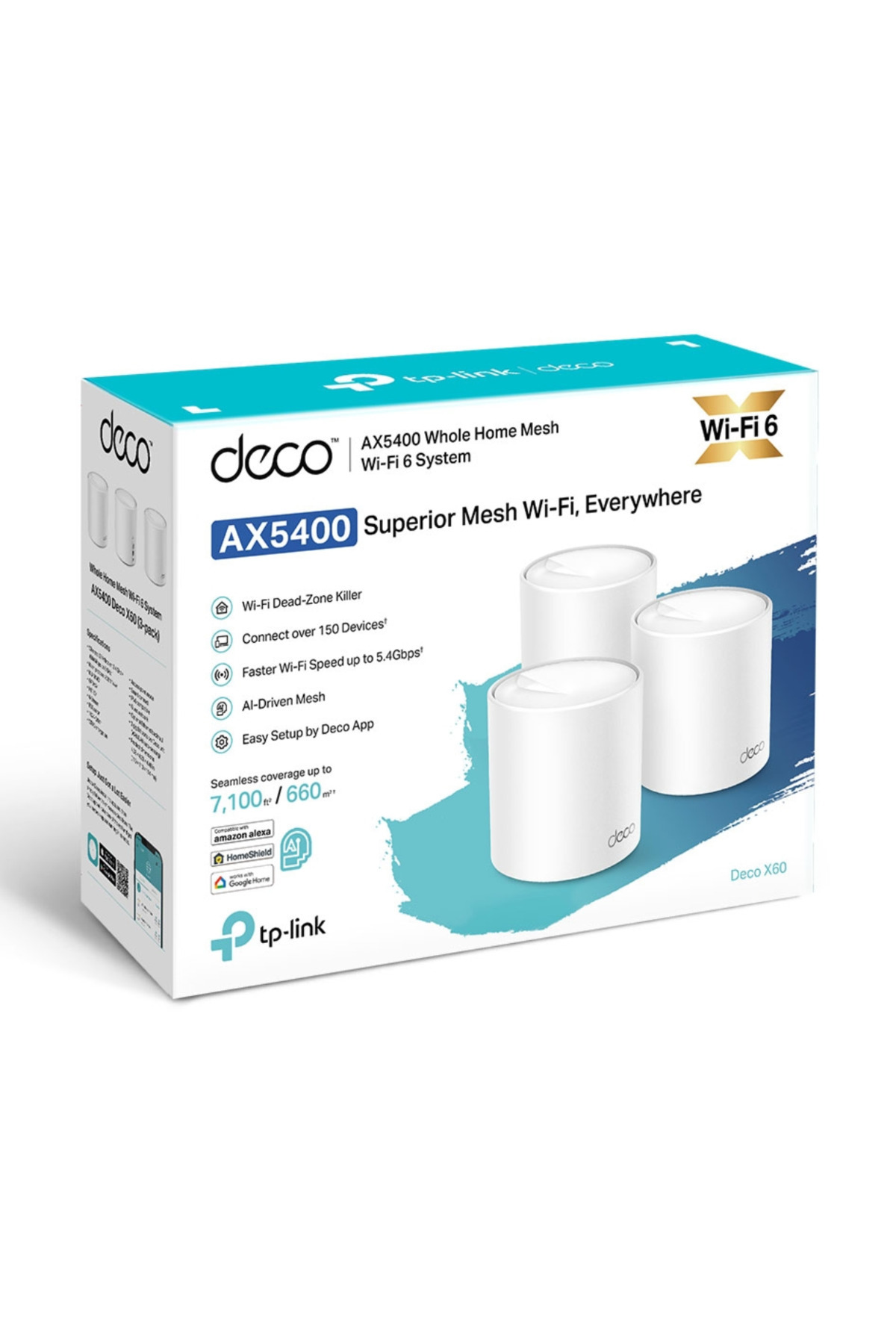 c-26 a-6 DECO X60-3 AX5400 Tüm Ev Mesh WiFi 6 Ünitesi 3-lü paket c-26 a-6 DECO X60-3 AX5400 Tüm Ev Mesh WiFi 6 Ünitesi 3-lü paket TY00007569 تک سایز
