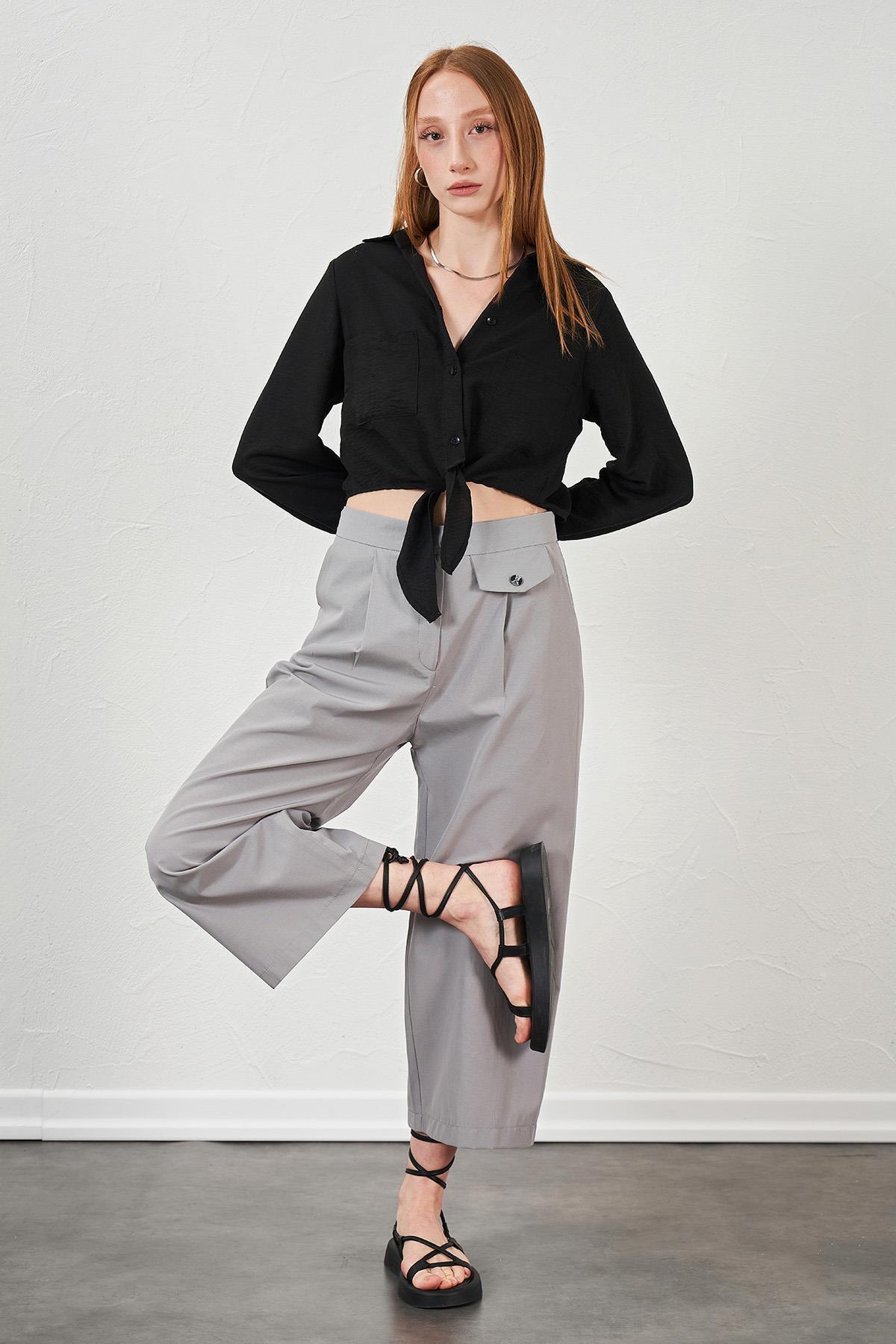 Kadın Siyah Kısa Palazzo Poplin Pantolon Kadın Siyah Kısa Palazzo Poplin Pantolon 4YKPNT36153 L