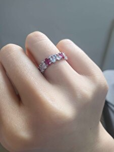Gümüş rodyumlu oval baget kesim yakut ve zirkon taşlı tamtur yüzük SGTL12399YAKUT Gümüş rodyumlu oval baget kesim yakut ve zirkon taşlı tamtur yüzük SGTL12399YAKUT 22
