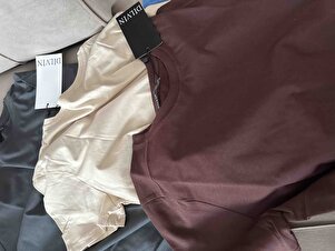 3471 Bisiklet Yaka Basic T-Shirt-Açık Bej 3471 Bisiklet Yaka Basic T-Shirt-Açık Bej 101A03471 40