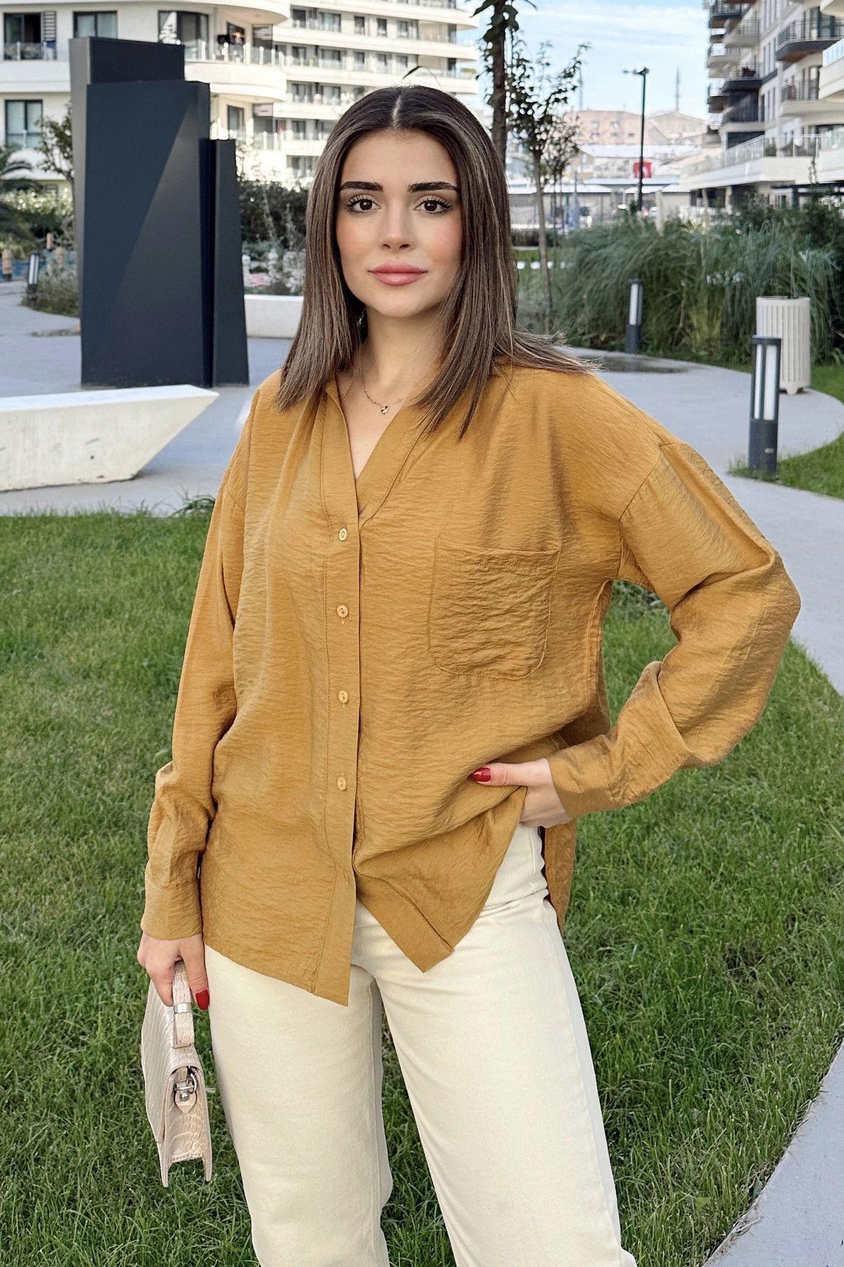 Kadın Turuncu Uzun Kol, Dokulu Kumaş, Salaş Gömlek Kadın Turuncu Uzun Kol, Dokulu Kumaş, Salaş Gömlek NYSS22-6582 42