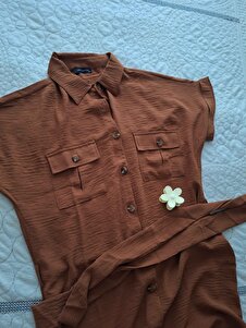 Kadın Kiremit Kısa Kol, Gömlek Yaka, Düz Desen, Çift Cepli, Aerobin Kumaş, Kuşaklı Maxi Elbise Kadın Kiremit Kısa Kol, Gömlek Yaka, Düz Desen, Çift Cepli, Aerobin Kumaş, Kuşaklı Maxi Elbise NYK4045 42