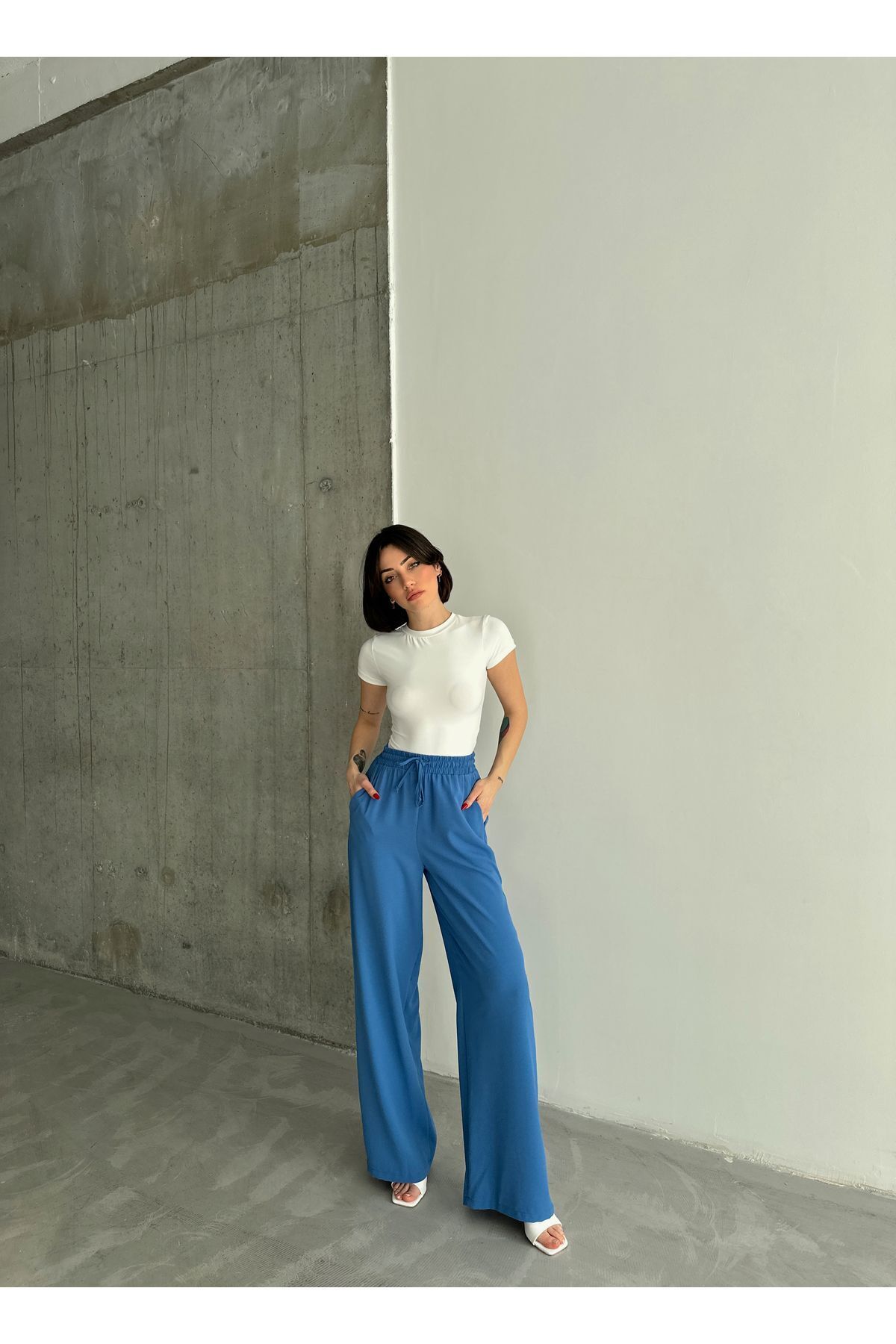 Yağ Yeşili Lastikli Bol Paça Pantolon Yağ Yeşili Lastikli Bol Paça Pantolon EF-las L