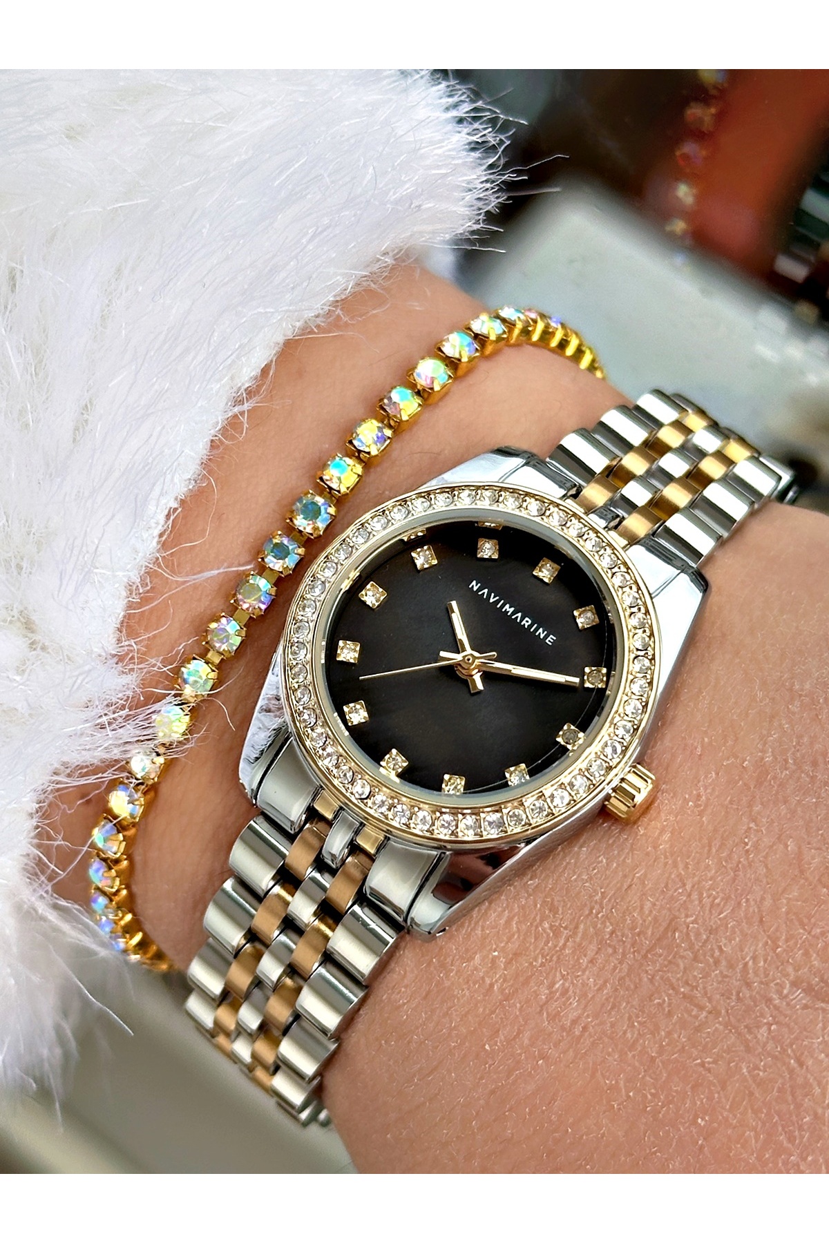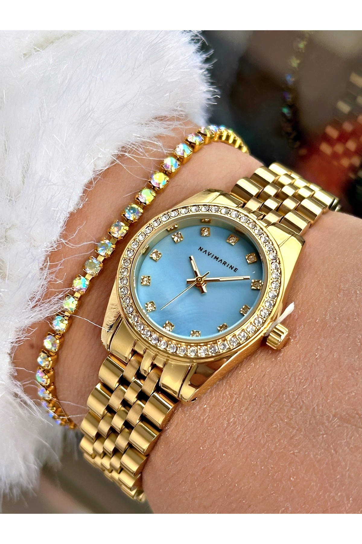 Altın Renk Çelik Kordon Kadın Kol Saati + Bileklik Altın Renk Çelik Kordon Kadın Kol Saati + Bileklik NV03 تک سایز