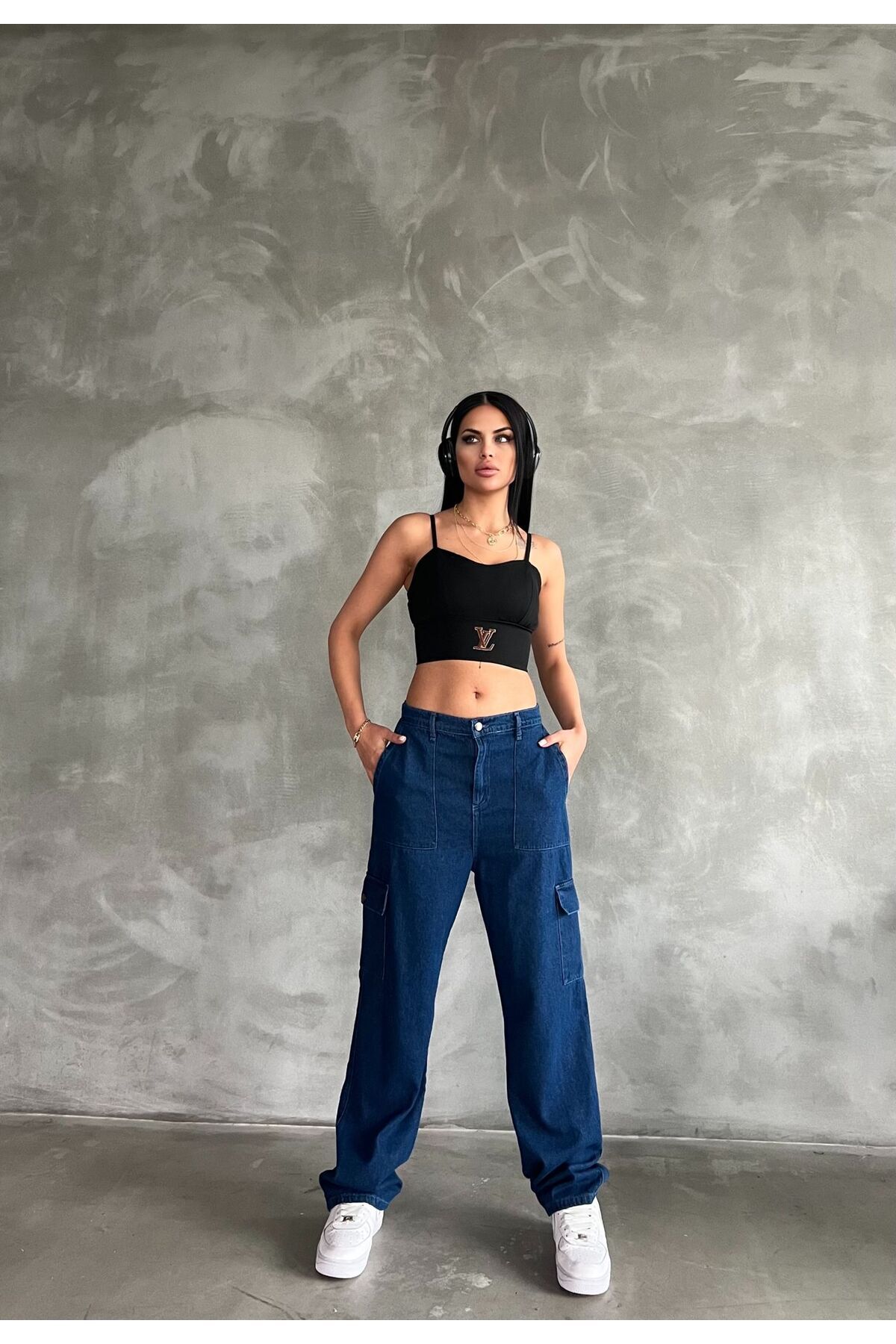 Mavi Soluk Efektli Kargo Cepli Yüksek Bel Palazzo Jean Mavi Soluk Efektli Kargo Cepli Yüksek Bel Palazzo Jean JEA1000 L