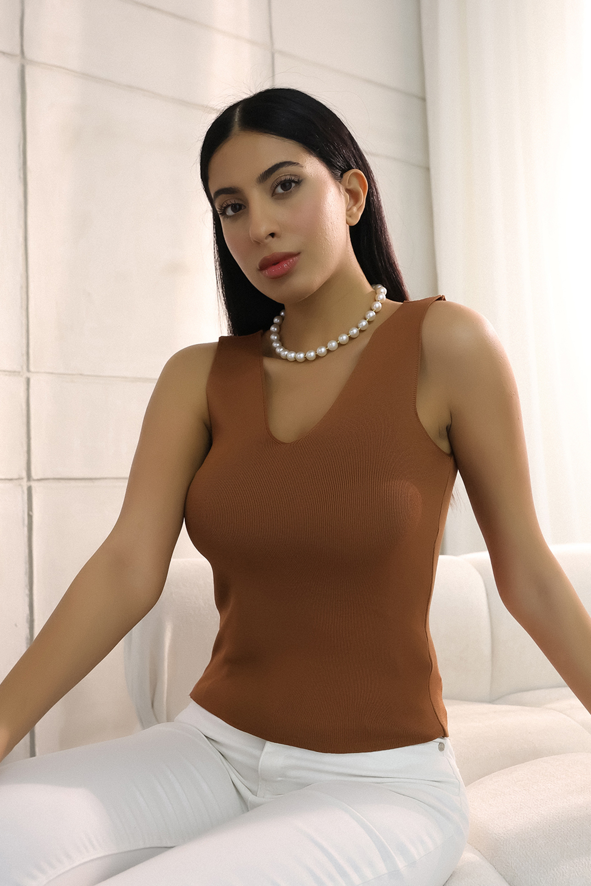 Yuvarlak Yaka Askılı Geometrik Şekilli Lastikli Yazlık Kadın Triko Atlet Yuvarlak Yaka Askılı Geometrik Şekilli Lastikli Yazlık Kadın Triko Atlet ALCH-00063 Standart