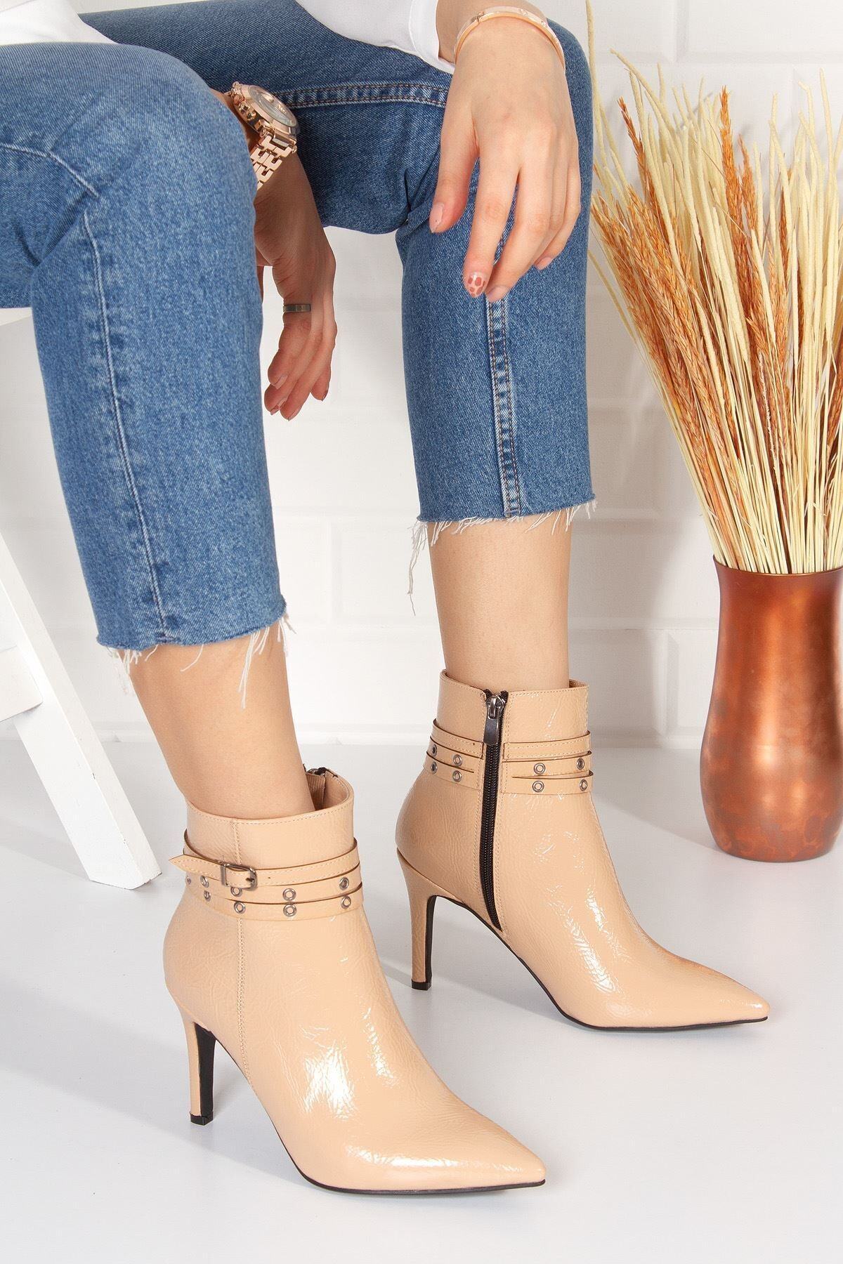 Kadın Bej Rugan Topuklu Bot byc0601 Kadın Bej Rugan Topuklu Bot byc0601 BYC0601 40