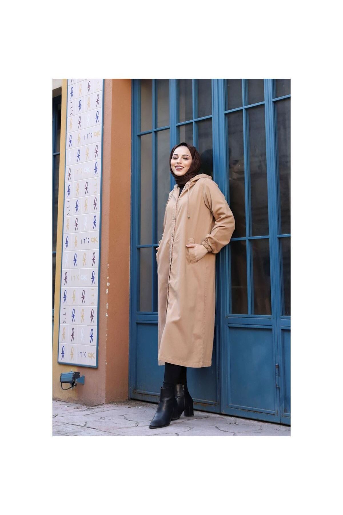 Denim Kapşonlu Kap- Denim Pardesü Badem-1352 Denim Kapşonlu Kap- Denim Pardesü Badem-1352 DG00010 42