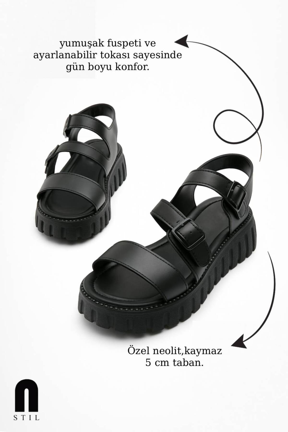 Günlük Kadın Siyah Sandalet Tokalı Yüksek Kalın Topuklu Tırtıklı Tabanlı Bantlı 269 Günlük Kadın Siyah Sandalet Tokalı Yüksek Kalın Topuklu Tırtıklı Tabanlı Bantlı 269 PRA-10423497-124416 40