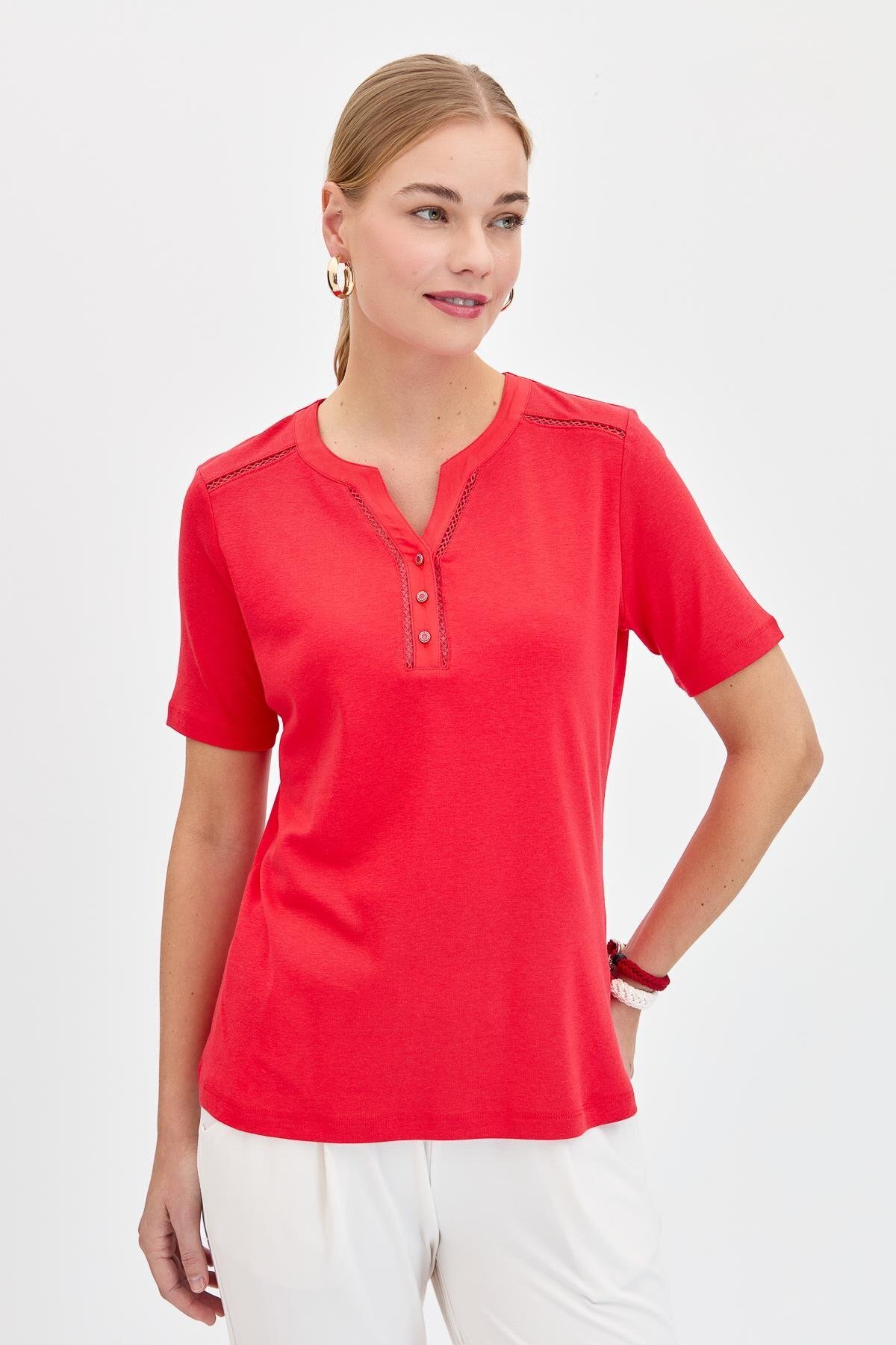 Kadın Omzu ve Yaka Kenarı İşlemeli Pamuklu Tshirt Kırmızı Kadın Omzu ve Yaka Kenarı İşlemeli Pamuklu Tshirt Kırmızı KMY24004 XL