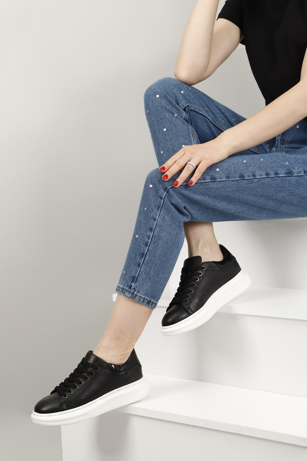 Kadın Siyah Bağcıklı Dolgu Taban Hakiki Deri Sneaker Kadın Siyah Bağcıklı Dolgu Taban Hakiki Deri Sneaker GDZA13424283 42