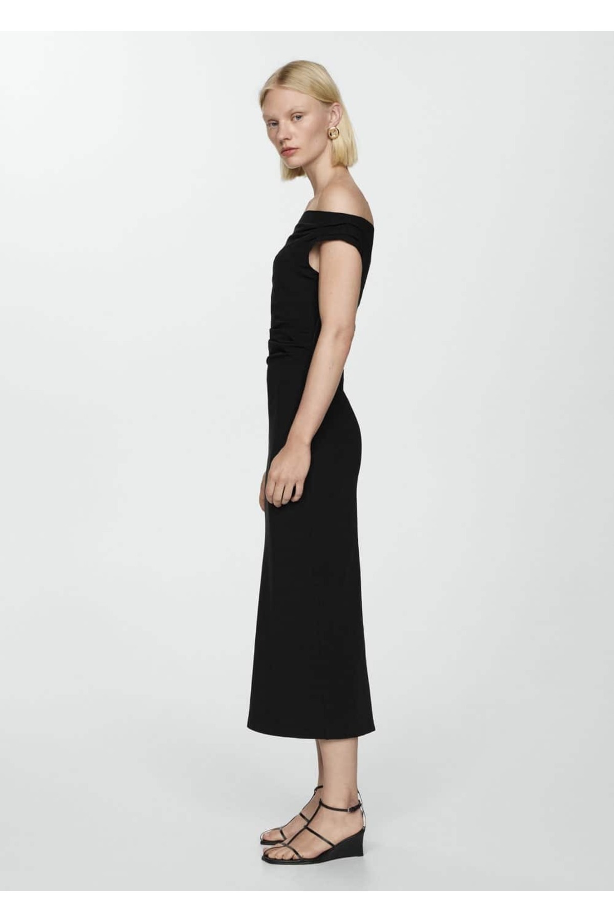 Omzu açık drape elbise Omzu açık drape elbise 67085747 XL