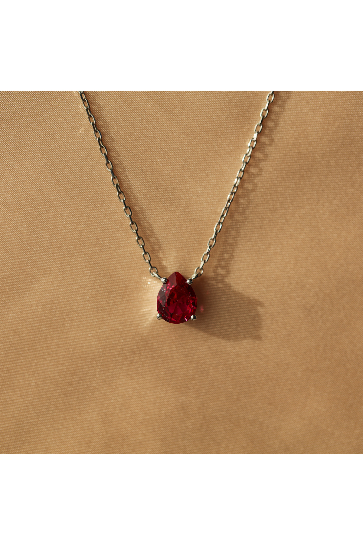 Yakut Gümüş Kolye, 925 Ayar Gümüş Doğum Taş Kolye, Kırmızı Zirkon Taşlı Kolye, Ruby Tektaş Kolye Yakut Gümüş Kolye, 925 Ayar Gümüş Doğum Taş Kolye, Kırmızı Zirkon Taşlı Kolye, Ruby Tektaş Kolye LİNOVETEKTAŞ 45 cm
